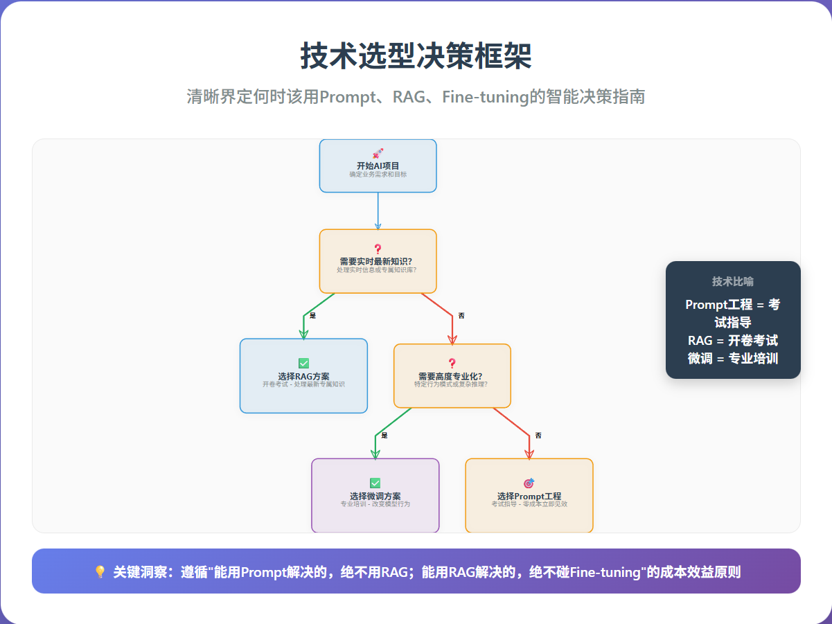一、决策框架:何时该用Prompt、RAG、Fine-tuning?