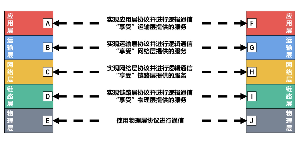 服务:在协议的控制下,两个对等实体在水平方向的逻辑通信使得本层能够向上一层提供服务。 要实现本层协议,还需要使用下面一层所提供的服务。 协议是"水平"的,而服务是"垂直"的。 实体看得见下层提供的服务,但并不知道实现该服务的具体协议。下层的协议对上层的实体是"透明"的。