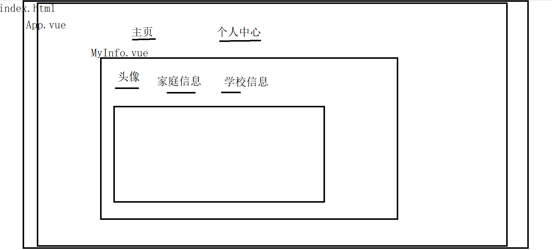 需求:在个人中心组件中,再设置三个链接,可以点击切换 [头像 | 家庭信息 | 学校信息]