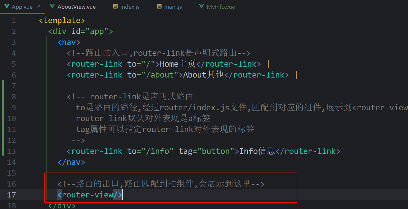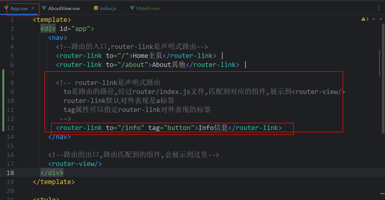 <router-link to="/info/9527" tag="button">Info信息</router-link> |