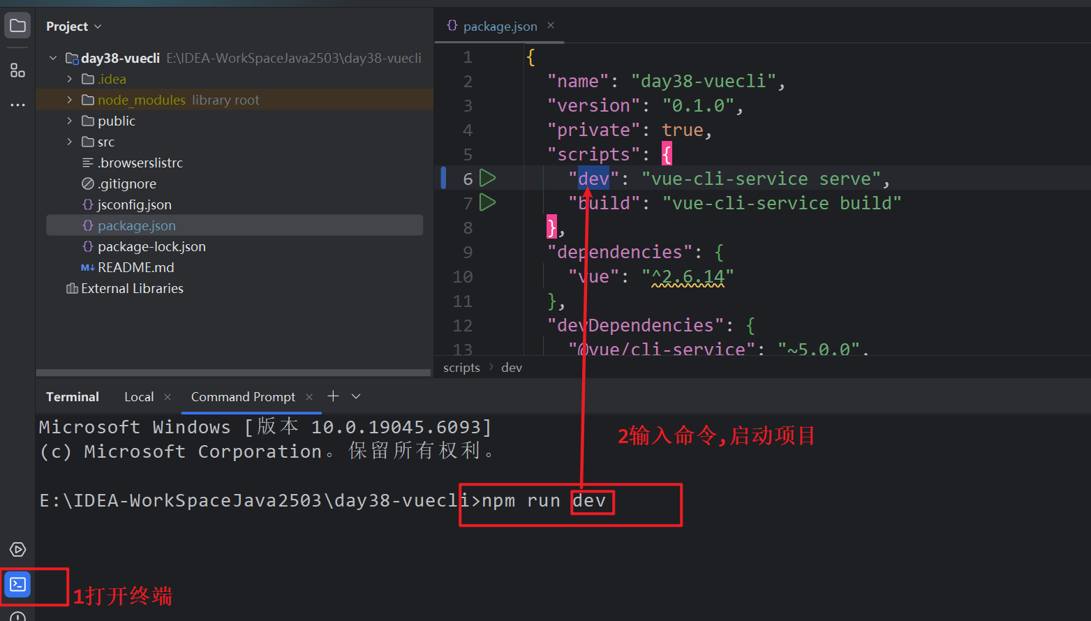 如上,如果脚本改成 dev, 那么就需要改成命令为 npm run dev