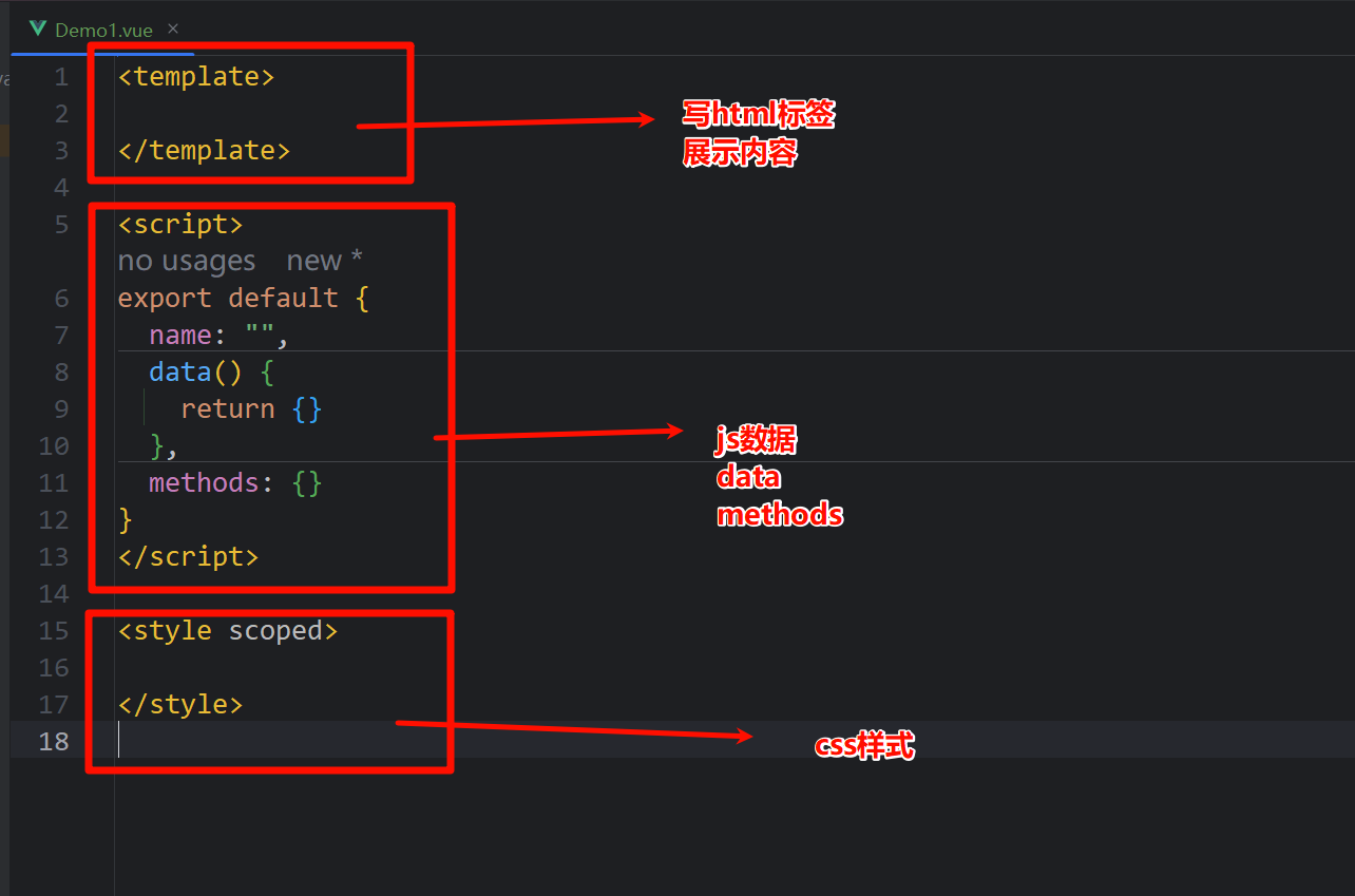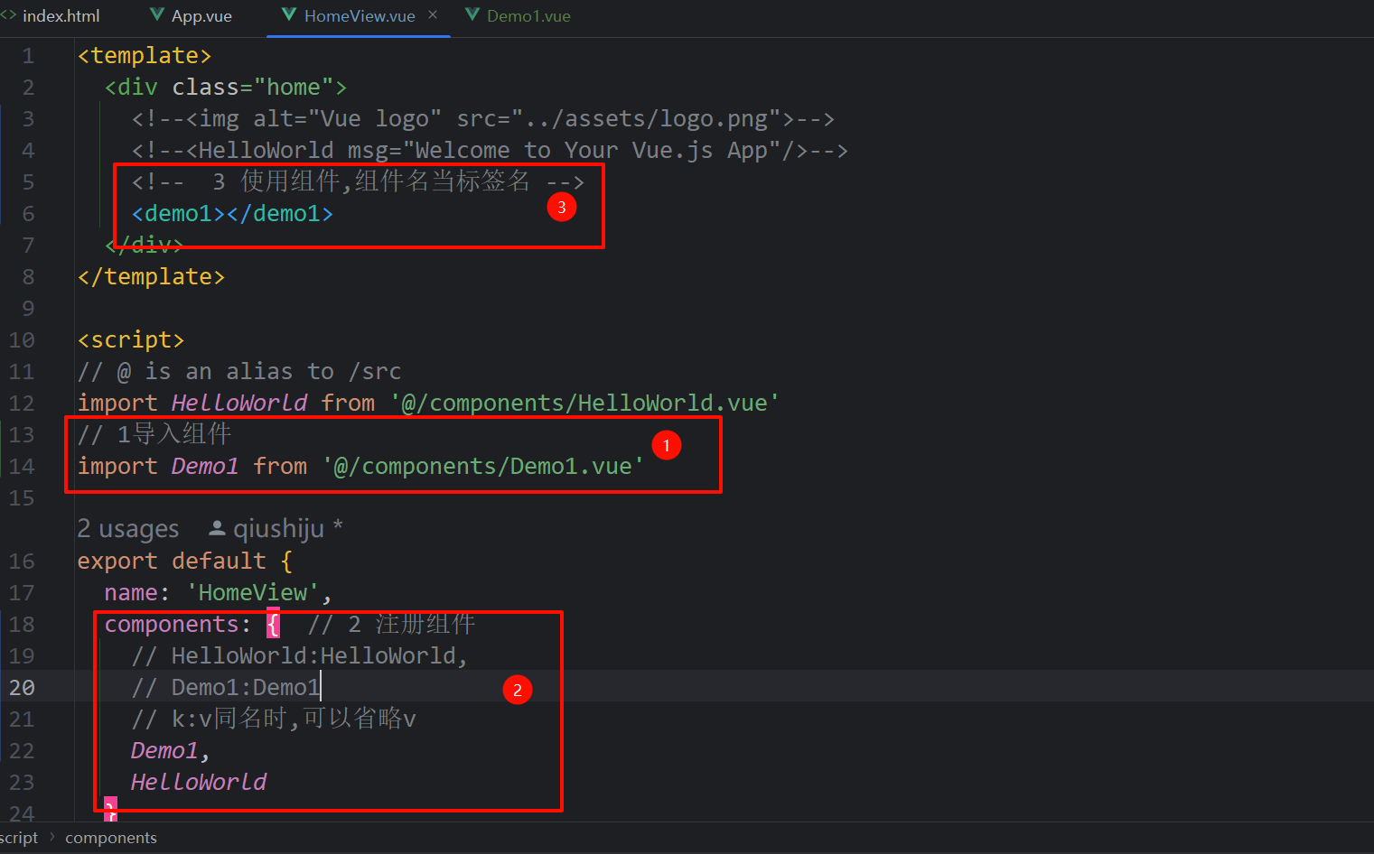 在工程的 src/components 下创建一个 Demo1 单文件 Demo1 就是自定义的组件