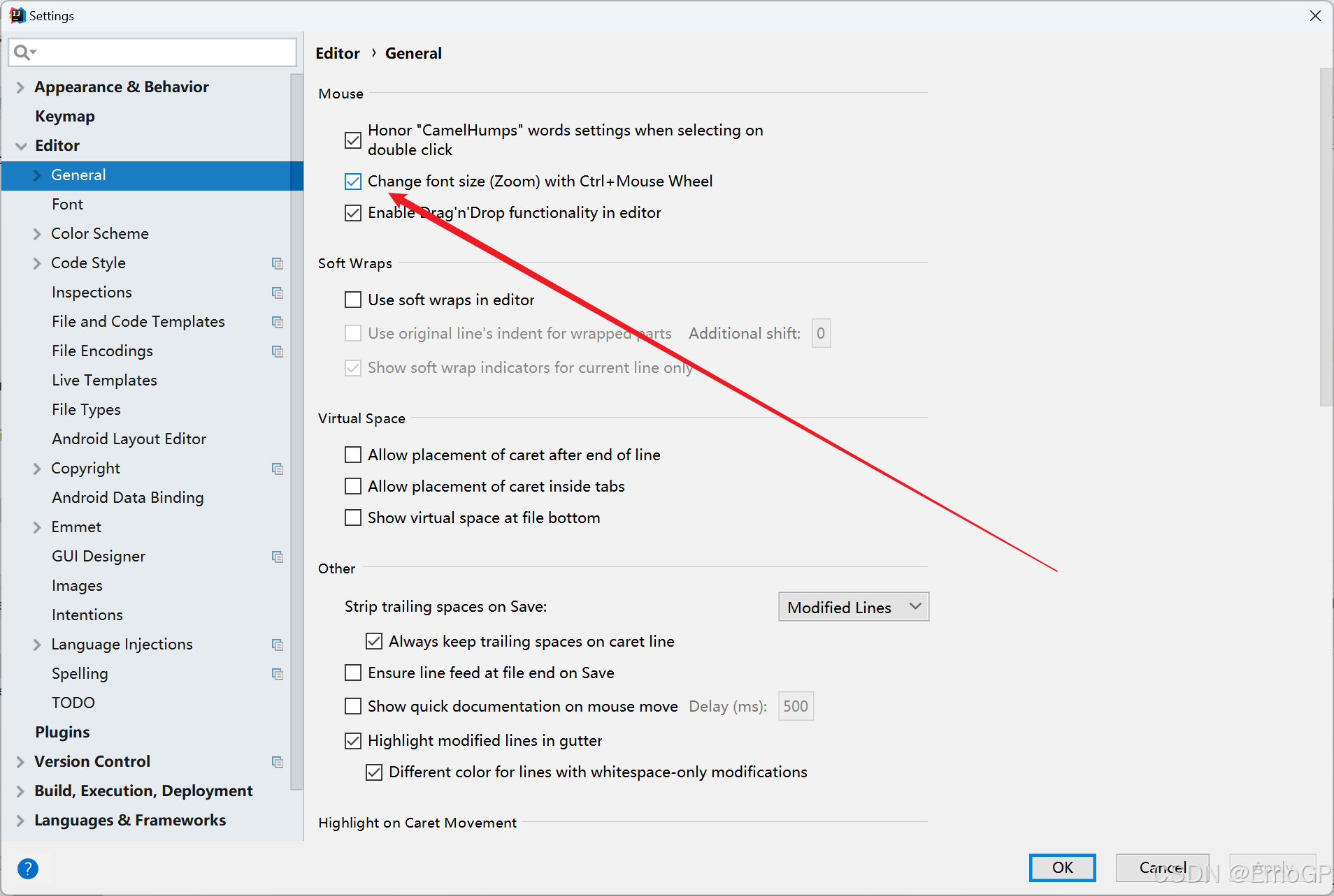 勾选后可以使用 Ctrl + 鼠标滚轮来更改字体大小(缩放)
