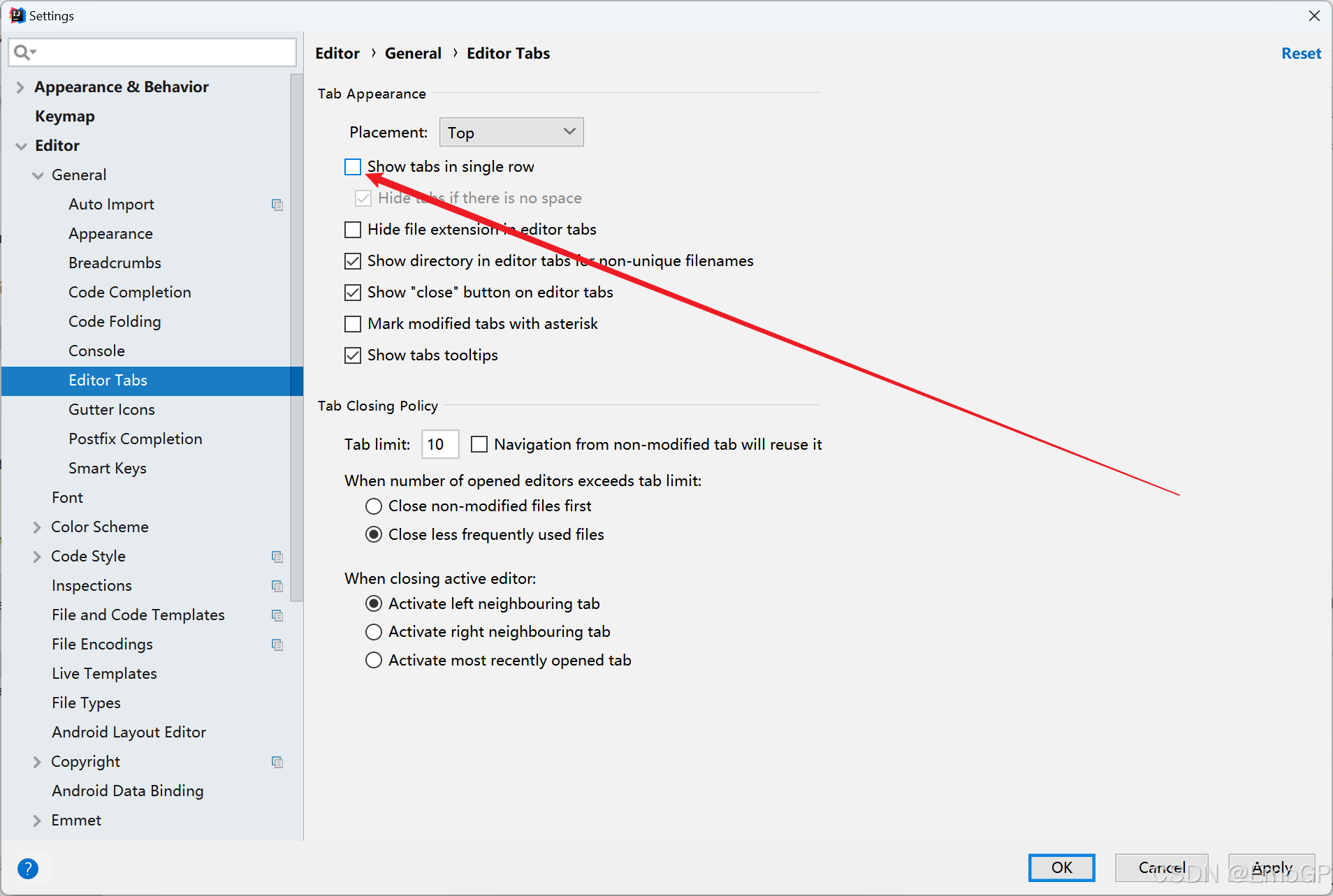 是否在单行显式编辑器选项卡(建议去掉勾选)