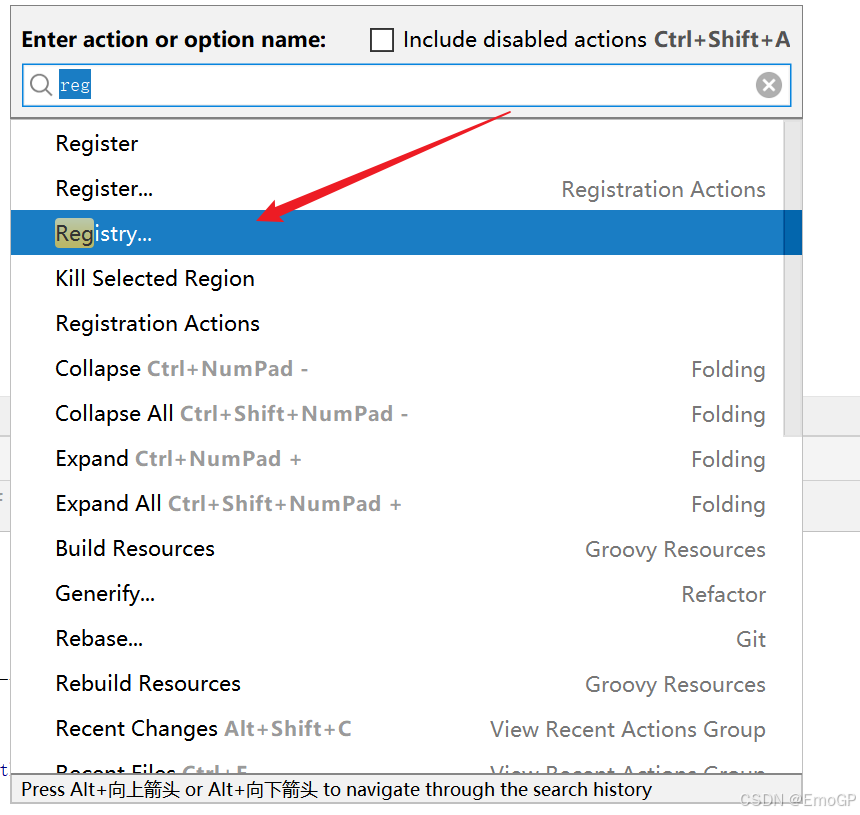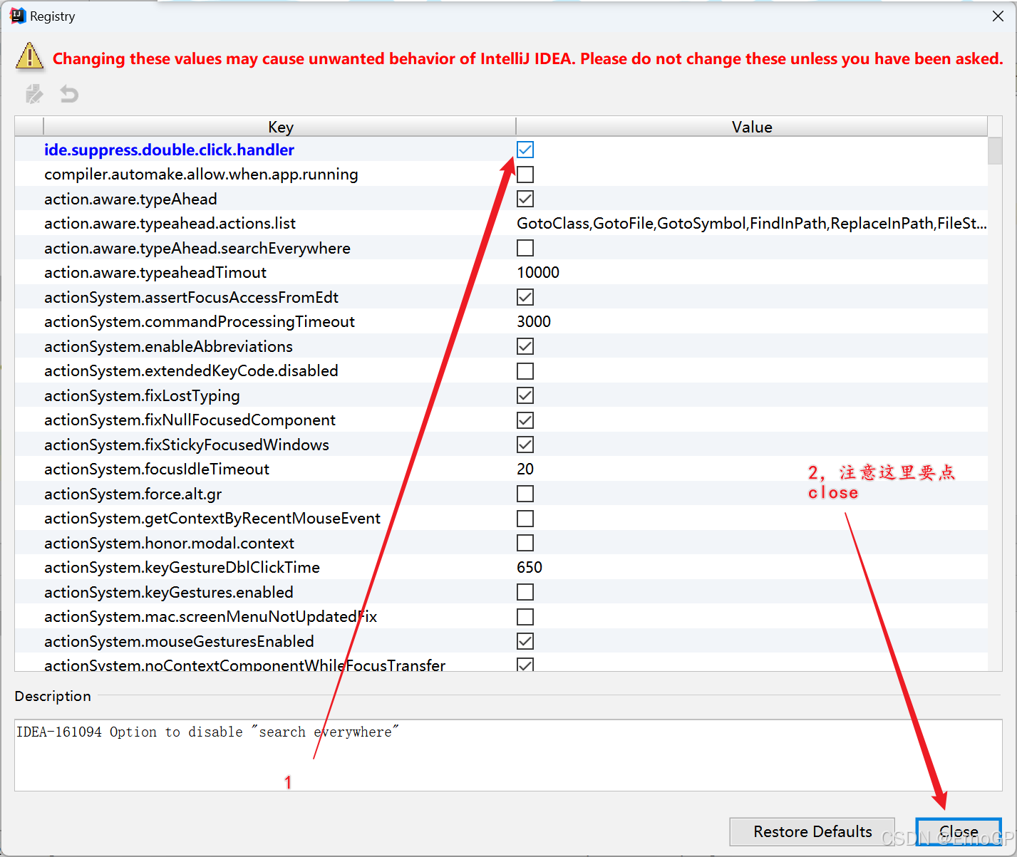 选择registry,找到"ide.suppress.double.click.handler",把复选框打上勾就可以取消双击shift出现搜索框了。