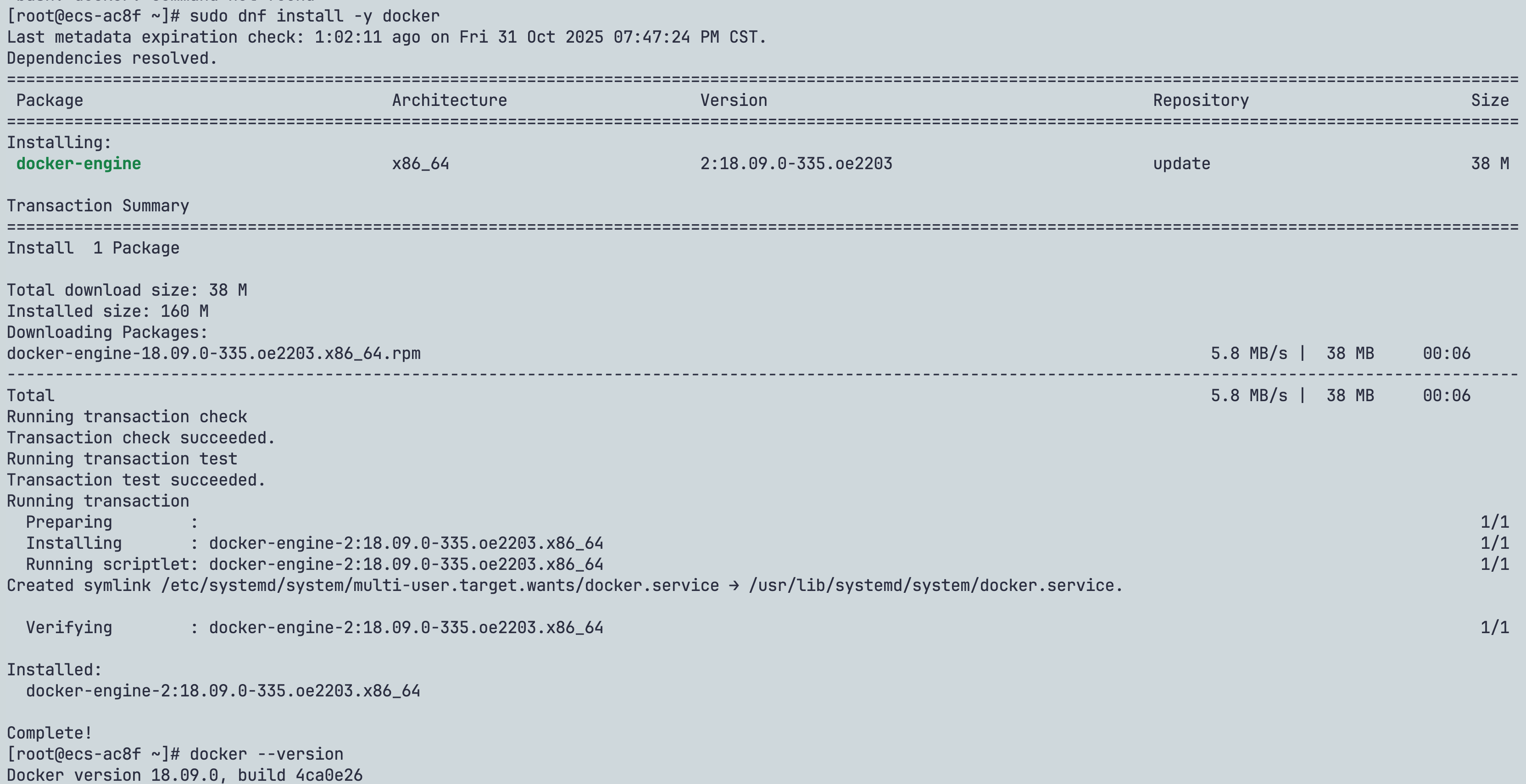 文档上说,这是华为开源的轻量级容器引擎,用C语言写的,比Docker更轻量,启动速度更快。我心想:真有这回事?既然OpenEuler自带这个,那我干脆Docker和iSulad都装上,测测看到底怎么样。
