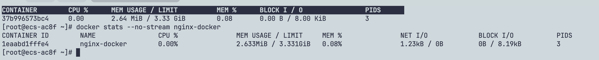 容器本身的资源占用基本一致,毕竟跑的是同样的nginx镜像。