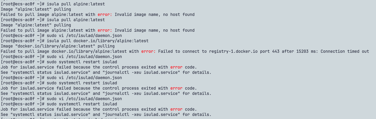 我一开始照着Docker的配置改iSulad的/etc/isulad/daemon.json,结果服务启动失败: