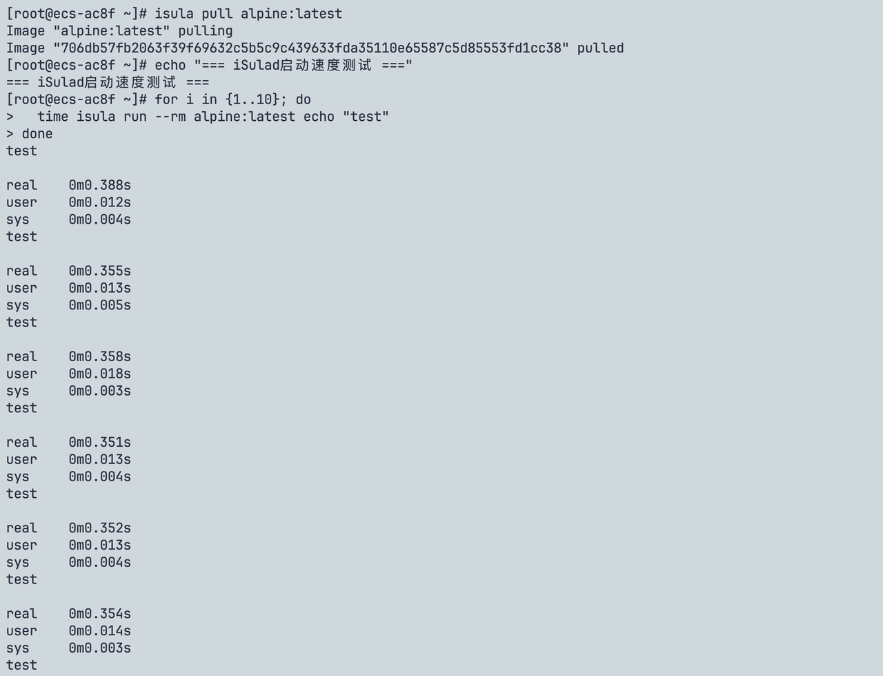 从我的测试数据看,这些优化确实有效果: - 容器启动快(iSulad 0.35秒)