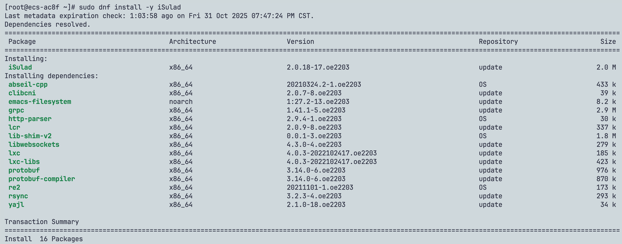 - 原生集成iSulad:不用额外折腾,官方仓库直接装