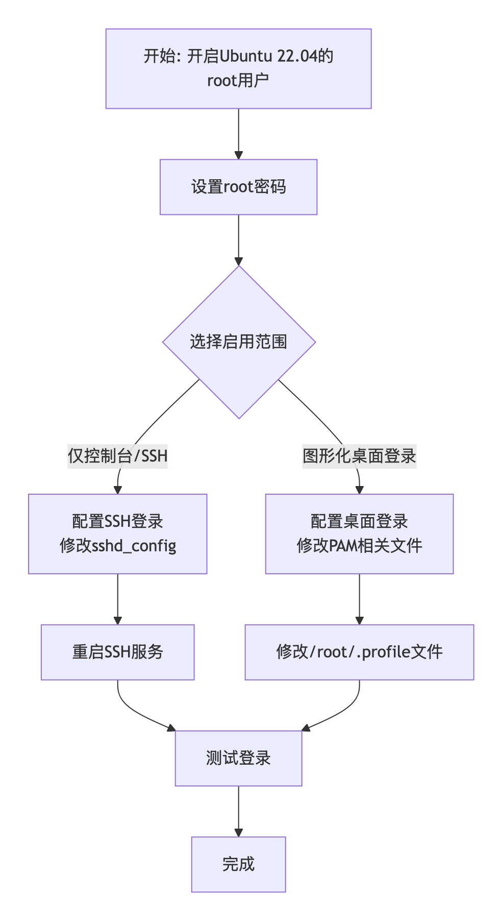 在 Ubuntu 22.04 中开启 root 用户主要涉及为 root 账户设置密码并调整相关配置。整个流程和关键步骤可参考下面