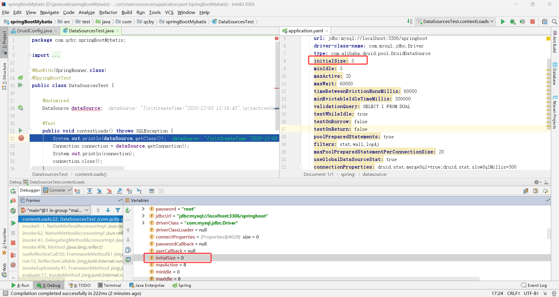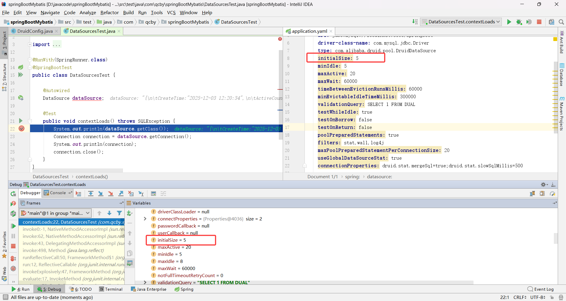 spring.datasource 中默认没有这些属性,所以 application.yaml 中会标黄,且不起作用