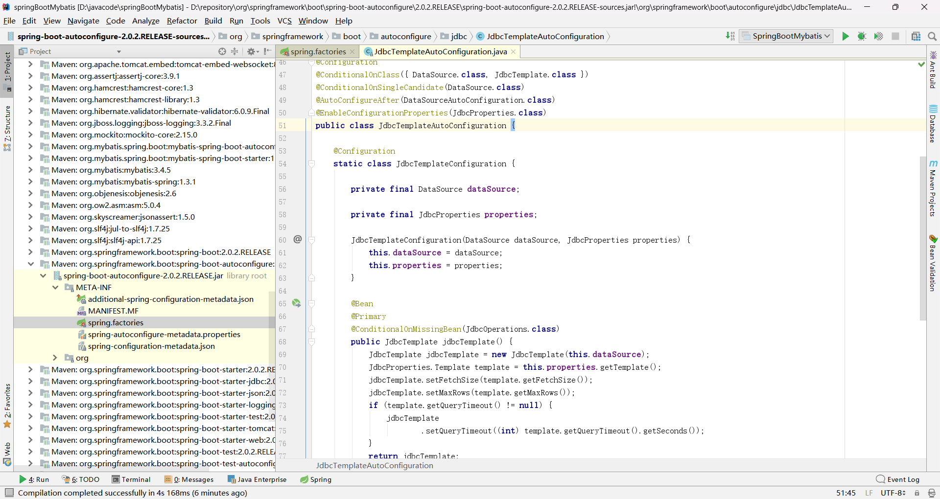 Springboot中提供了JdbcTemplateAutoConfiguration的自动配置 org.springframework.boot.autoconfigure.jdbc.JdbcTemplateAutoConfiguration,