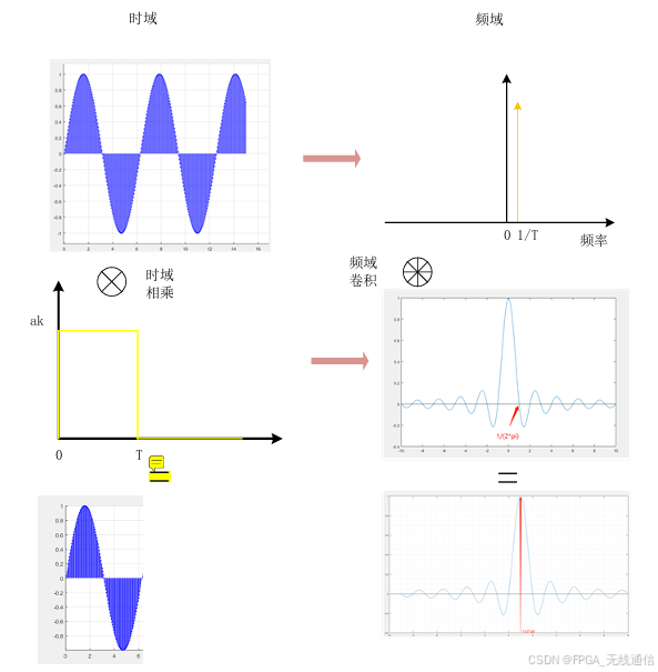 时域矩形函数与一个载波信号进行相乘,把数据信息调制到载波上,那么对应时 域相乘,