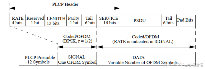 中包括有后续数据的调制 类型、编码速率和数据长度等信息。