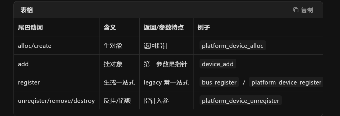 在 Linux 内核驱动里,"动词在前" 还是 "动词在后" 并不是随便写的,它背后有一条 "谁拥有资源" 的约定。