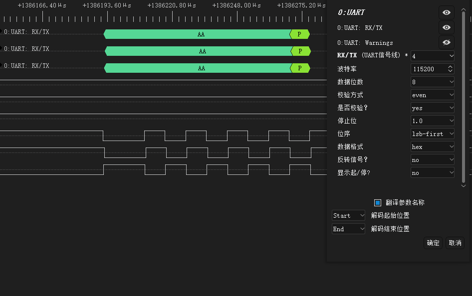 3、调试过程中用到了逻辑分析仪,DSView对数据位、校验位描述时与Renesas一致,也是分开描述