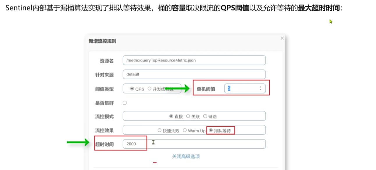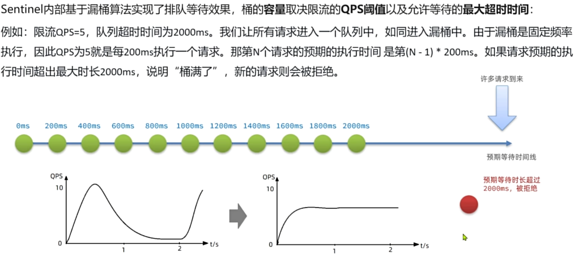 sentinel中的限流中的排队等待功能正是基于漏桶算法实现的。