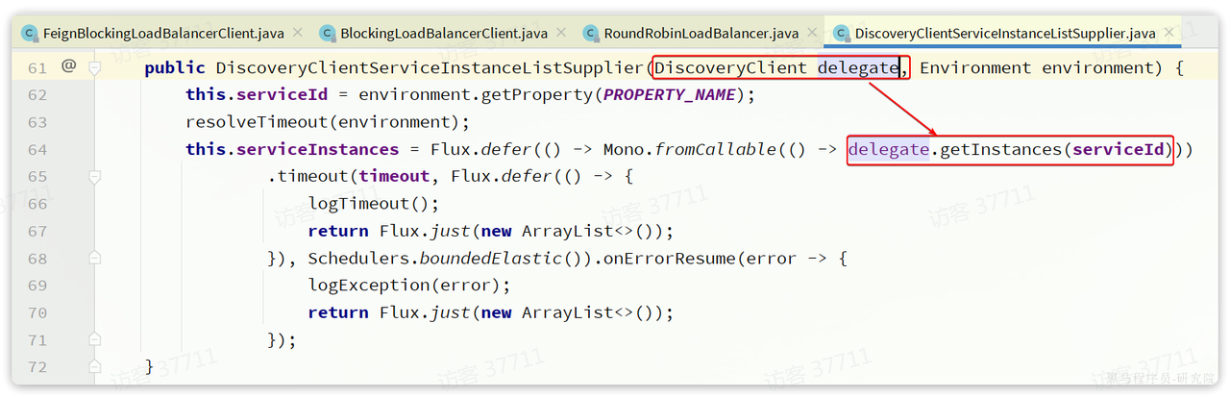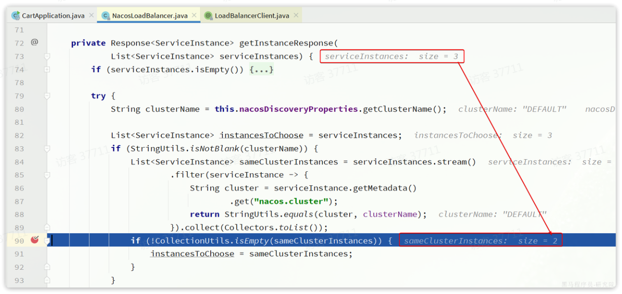 然后利用stream的filter过滤找到被调用的服务实例中与当前服务实例