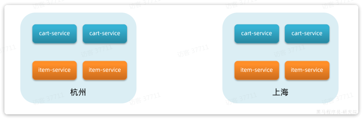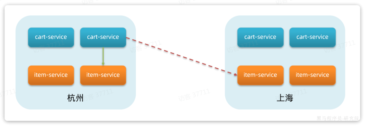假如我现在有两个机房,都部署有item-service和cart-service服务: