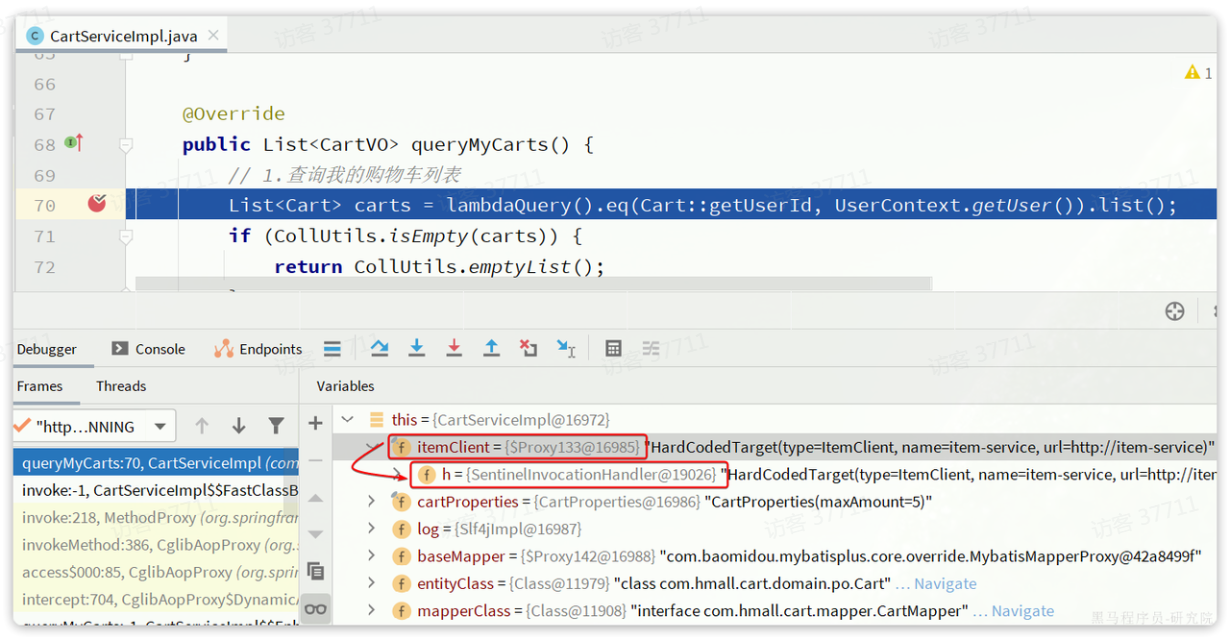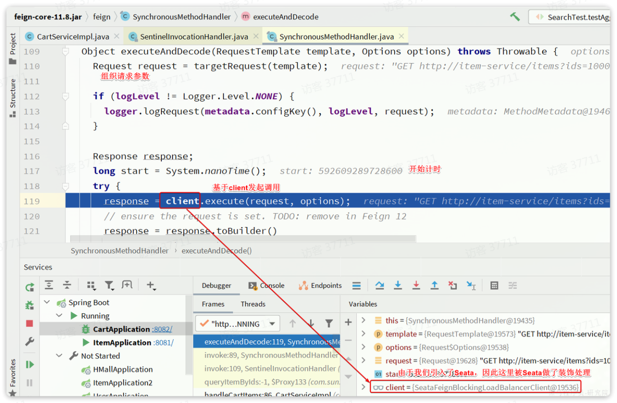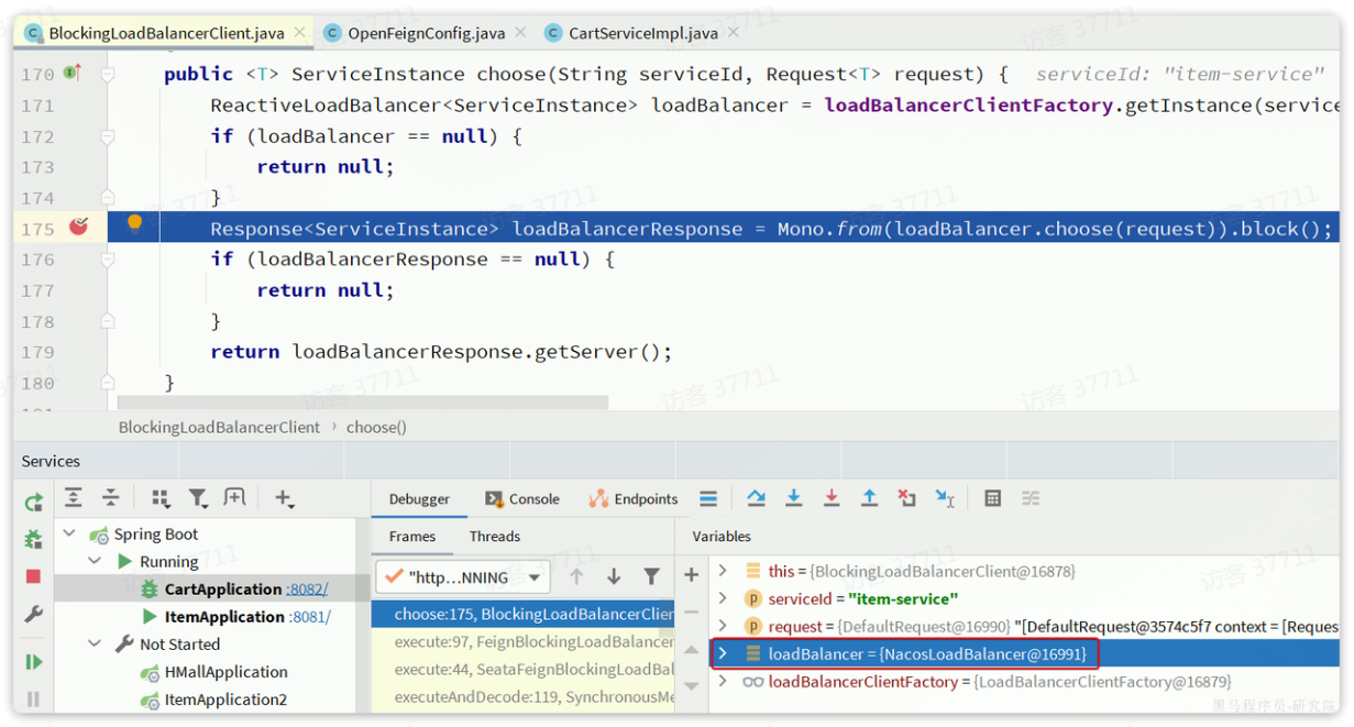 访问10次购物车接口,可以发现大多数请求都访问到了8083这个实例。
