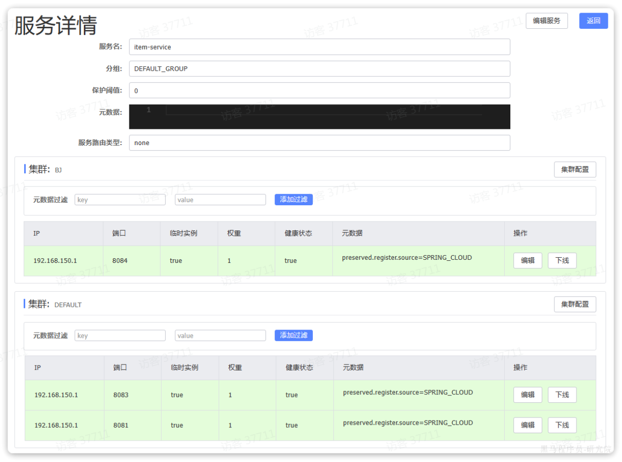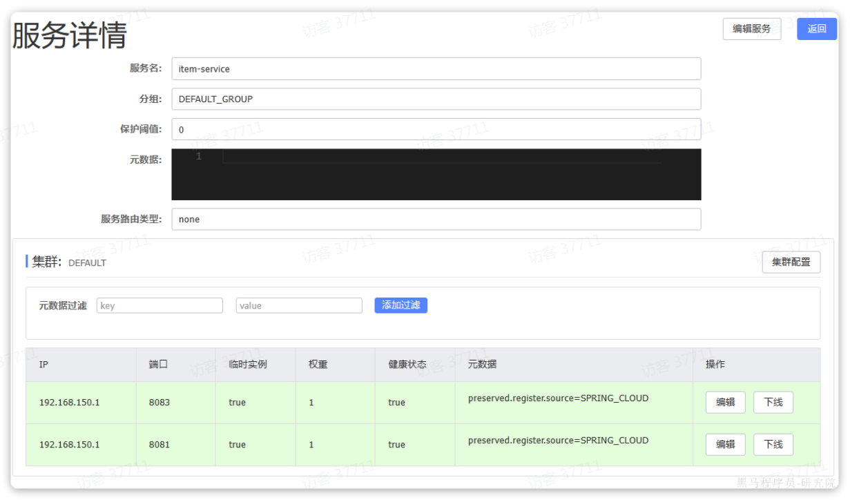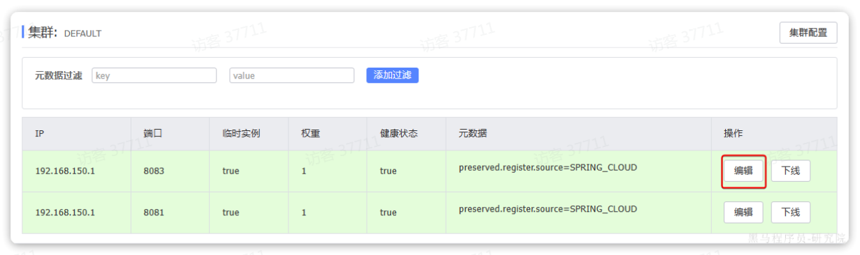 我们打开nacos控制台,进入item-service的服务详情页,可以看到每个实例后面都有一个编辑 按钮: