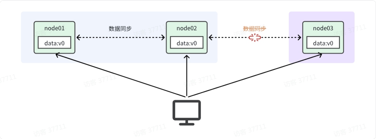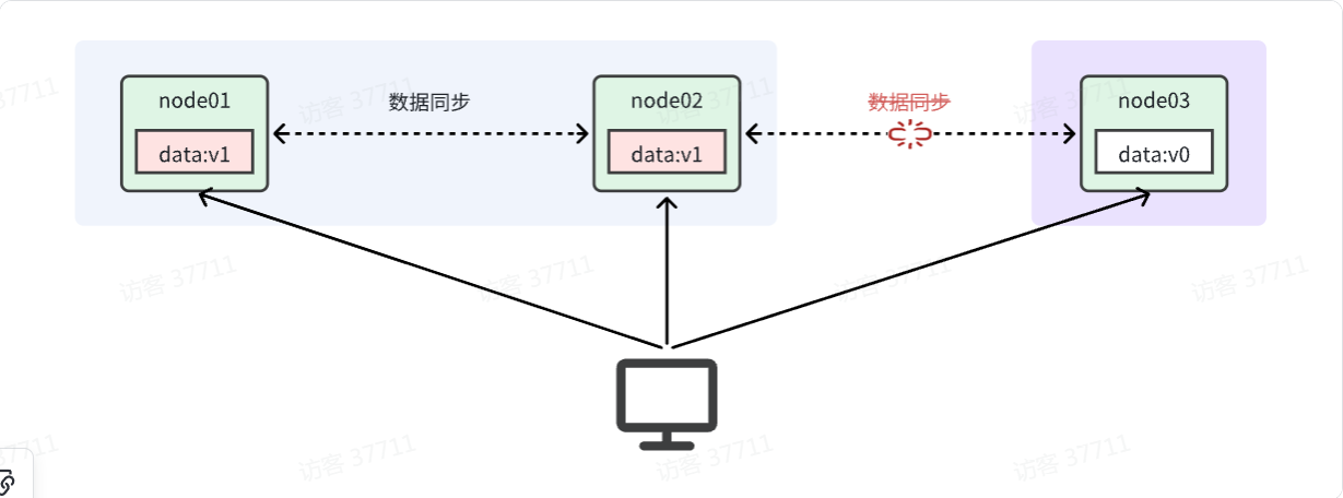 允许用户任意读写,保证可用性。但由于node03无法完成同步,就会出现数据不一致的情况。满足AP