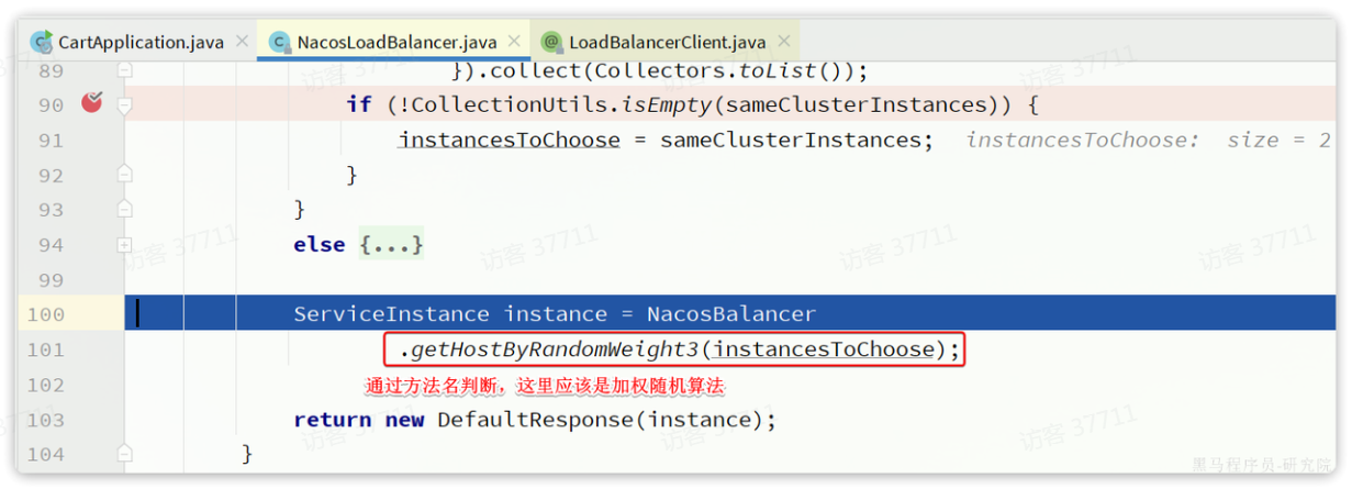 同集群的实例还剩下两个,接下来就需要做负载均衡了,具体用的是什么算法呢?