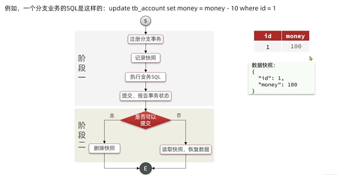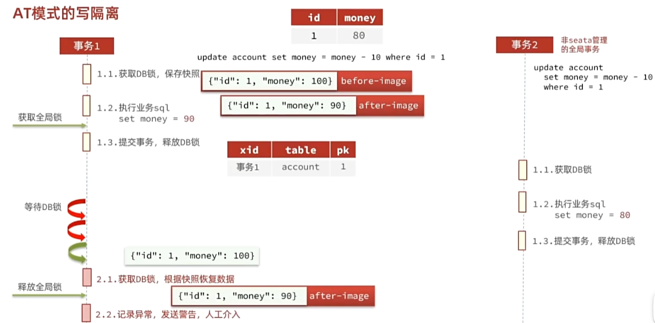 我们先回顾一下AT模式的流程,AT模式也分为两个阶段: