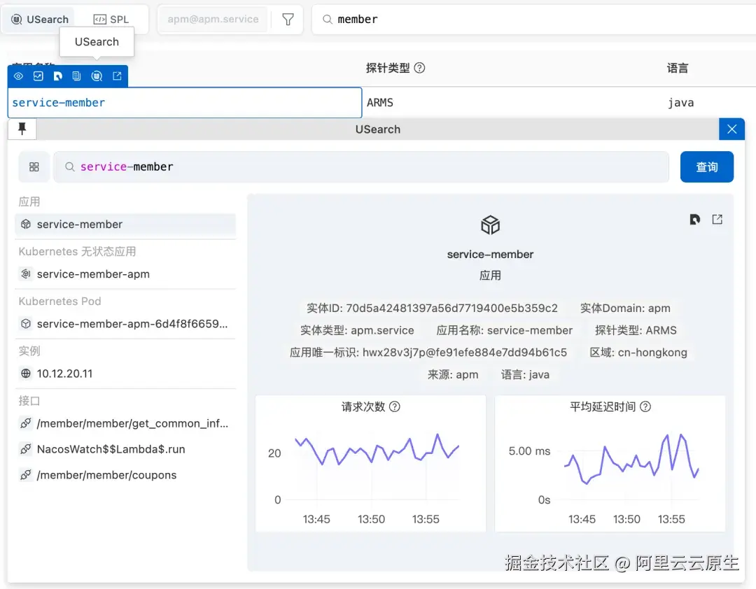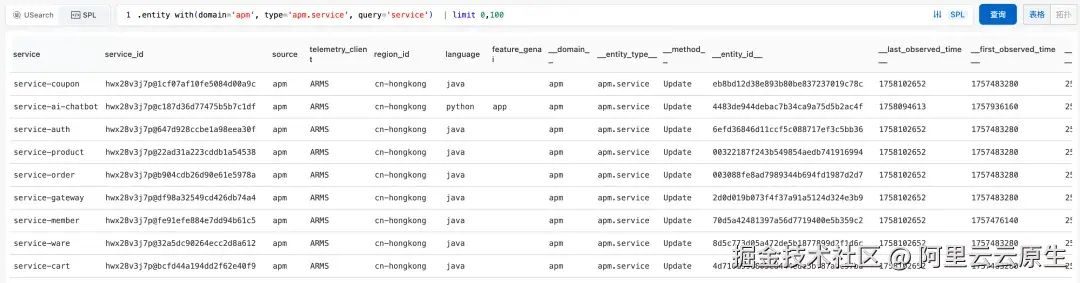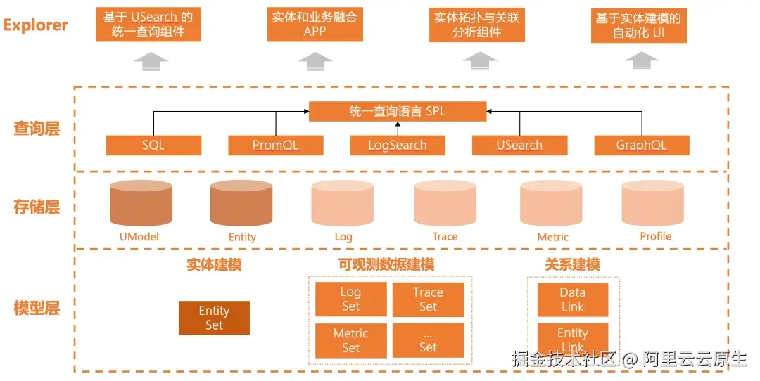 1\] USearch 实体查询语言 [help.aliyun.com/zh/cms/clou...](https://link.juejin.cn?target=https%3A%2F%2Fhelp.aliyun.com%2Fzh%2Fcms%2Fcloudmonitor-2-0%2Fuser-guide%2Fentity-explorer-overview%3Fspm%3Da2c4g.11186623.help-menu-28572.d_2_1_0_0.376c3f5b0thNfp%26scm%3D20140722.H_2974636._.OR_help-T_cn~zh-V_1%233250fbab95y2y "https://help.aliyun.com/zh/cms/cloudmonitor-2-0/user-guide/entity-explorer-overview?spm=a2c4g.11186623.help-menu-28572.d_2_1_0_0.376c3f5b0thNfp&scm=20140722.H_2974636._.OR_help-T_cn~zh-V_1#3250fbab95y2y") \[2\] SPL 数据处理语言 [help.aliyun.com/zh/cms/clou...](https://link.juejin.cn?target=https%3A%2F%2Fhelp.aliyun.com%2Fzh%2Fcms%2Fcloudmonitor-2-0%2Fuser-guide%2Fentity-explorer-overview%3Fspm%3Da2c4g.11186623.help-menu-28572.d_2_1_0_0.376c3f5b0thNfp%26scm%3D20140722.H_2974636._.OR_help-T_cn~zh-V_1%236e82481ab0637 "https://help.aliyun.com/zh/cms/cloudmonitor-2-0/user-guide/entity-explorer-overview?spm=a2c4g.11186623.help-menu-28572.d_2_1_0_0.376c3f5b0thNfp&scm=20140722.H_2974636._.OR_help-T_cn~zh-V_1#6e82481ab0637")