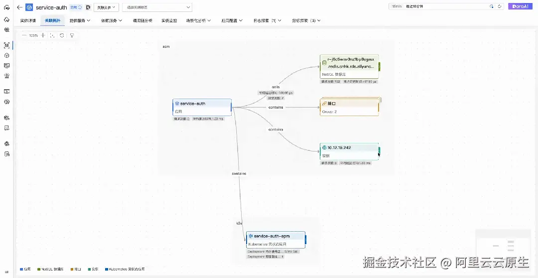 - 动态关系发现:该组件不依赖于硬编码的配置,而是通过后台服务实时计算和发现实体间的关联关系(例如,服务调用、主机部署、网络访问等)。