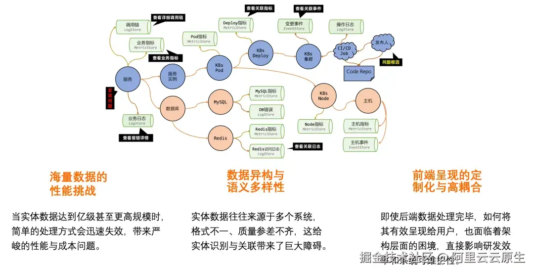 要实现高效、精准的实体探索,意味着需要在海量、异构的数据中快速定位并分析目标。在实践过程中,我们面临三大核心技术挑战: