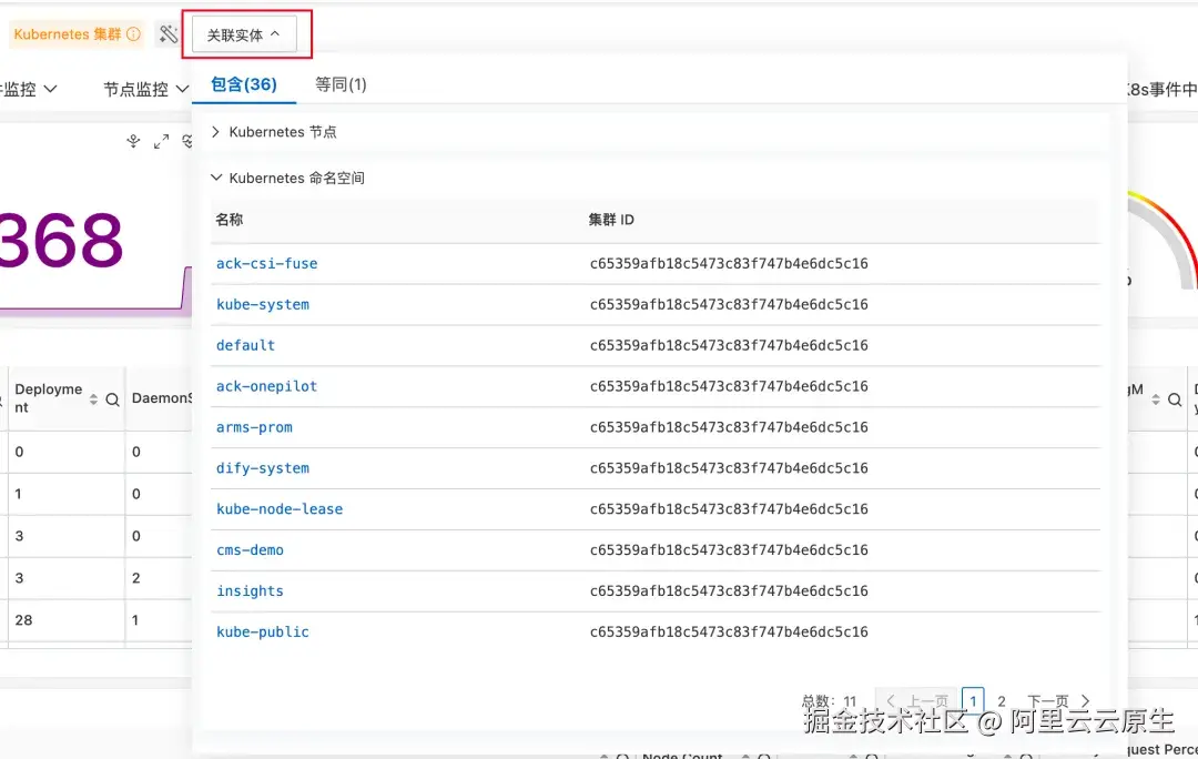 关联实体:实体概览首页点击关联实体可以快捷查看该实体和其他实体的关联关系表格,表格根据关系的名称分类,关系有:包含、等同、上游、下游等。点击关联实体,可以跳转到对应实体的实体概览。