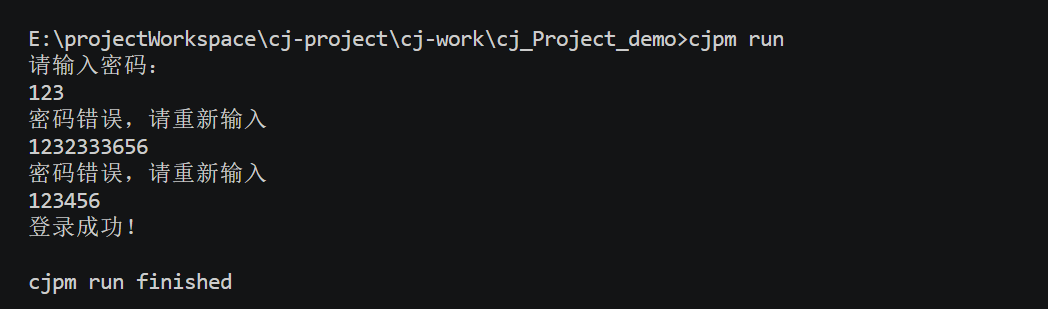 println("密码错误,请重新输入")