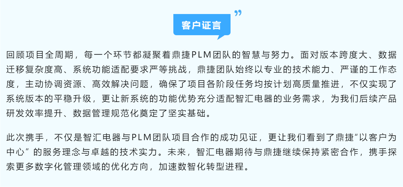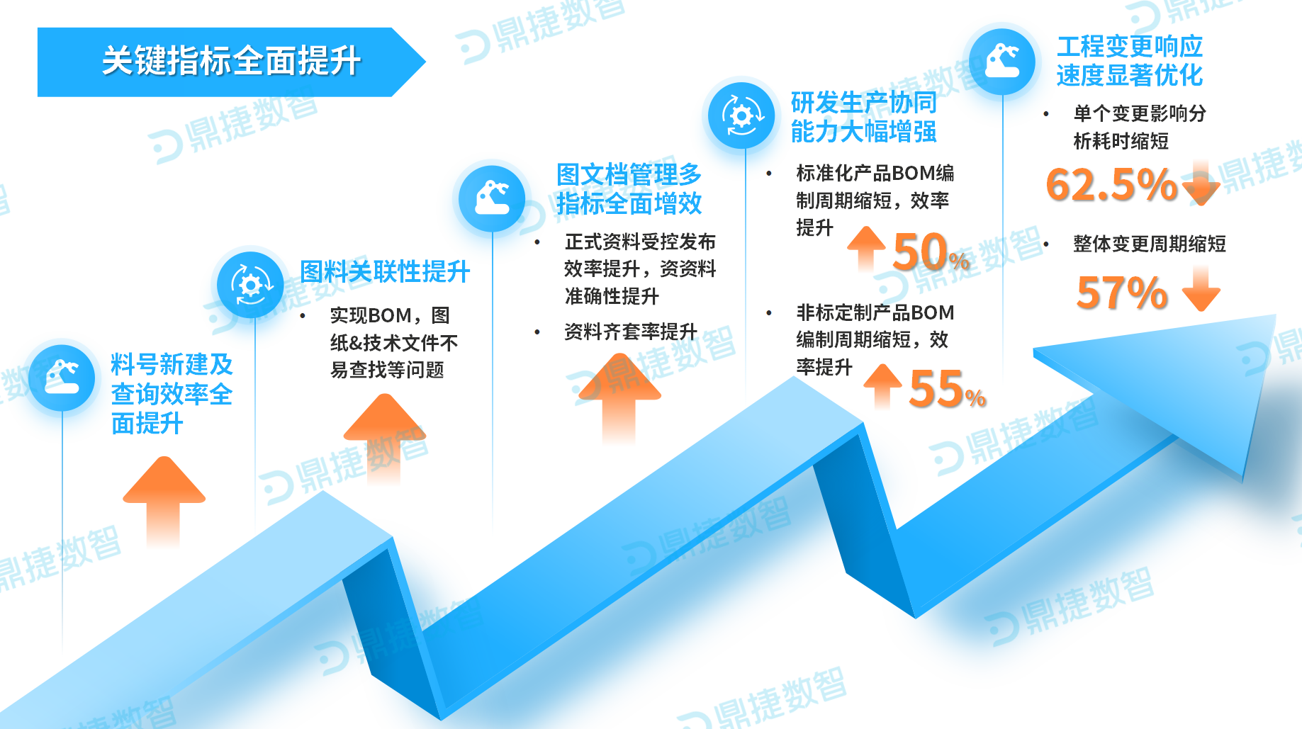 通过上线鼎捷新一代PLM系统,智汇电器在图文档管理、研发协同以及工程变更能力等关键环节实现显著提升: