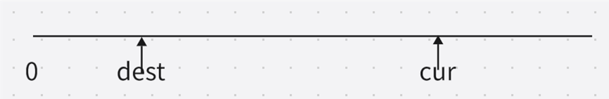 所以需要在原来的不步骤中的第一步后再加一步 ------ 处理边界情况。什么情况下 dest 会越界呢?当 cur 指向的位置为0时。