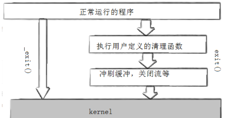 其实从头文件中我们就可以看出来了,exit的头文件是#include <stdlib.h>,而_exit的头文件是#include <unistd.h>,即_exit是系统调用函数,exit只是一个普通函数