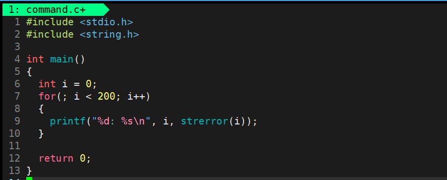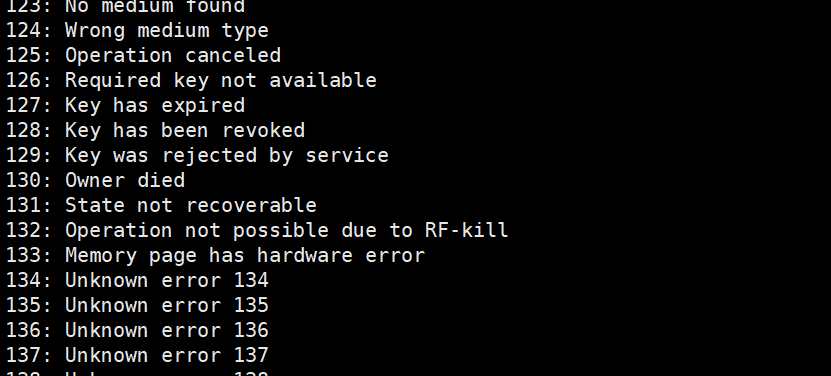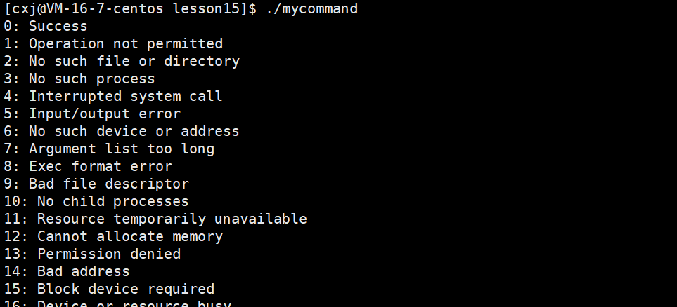 全局变量errno,它是用来存储最近一次的错误码,这里应该注意区分一下,一个程序可能出现多次错误码,但是只能有一个退出码,当程序出现错误的时候,例如:除零错误,空指针的访问,以及申请内存错误等,当程序出现一次错误就会发出一次错误码,而errno就可以捕获并存储最近一次的错误码,错误码用于程序内部获取出现错误的编号,从0开始编号,那么我们究竟有多少个退出码呢?strerror用于打印错误码的对应字符串描述信息,我们可以借助strerror,使用循环来打印一下: