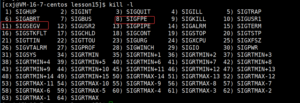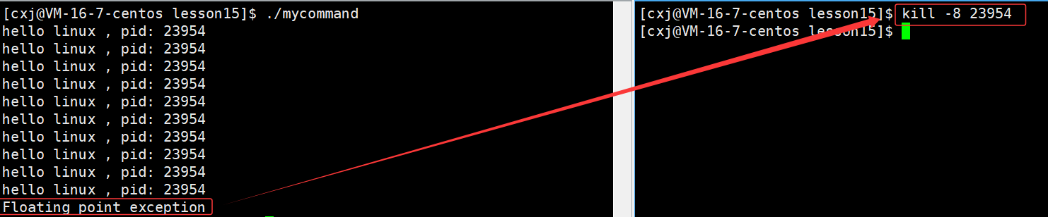 再演示使用8号信号给进程发送除零错误的信号,进而进程接收到信号后就会异常终止