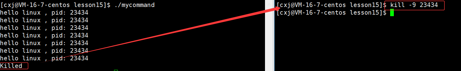 我们可以使用kill指令给进程发送信号,进程接收到我们的信号之后就会出现异常终止的情况