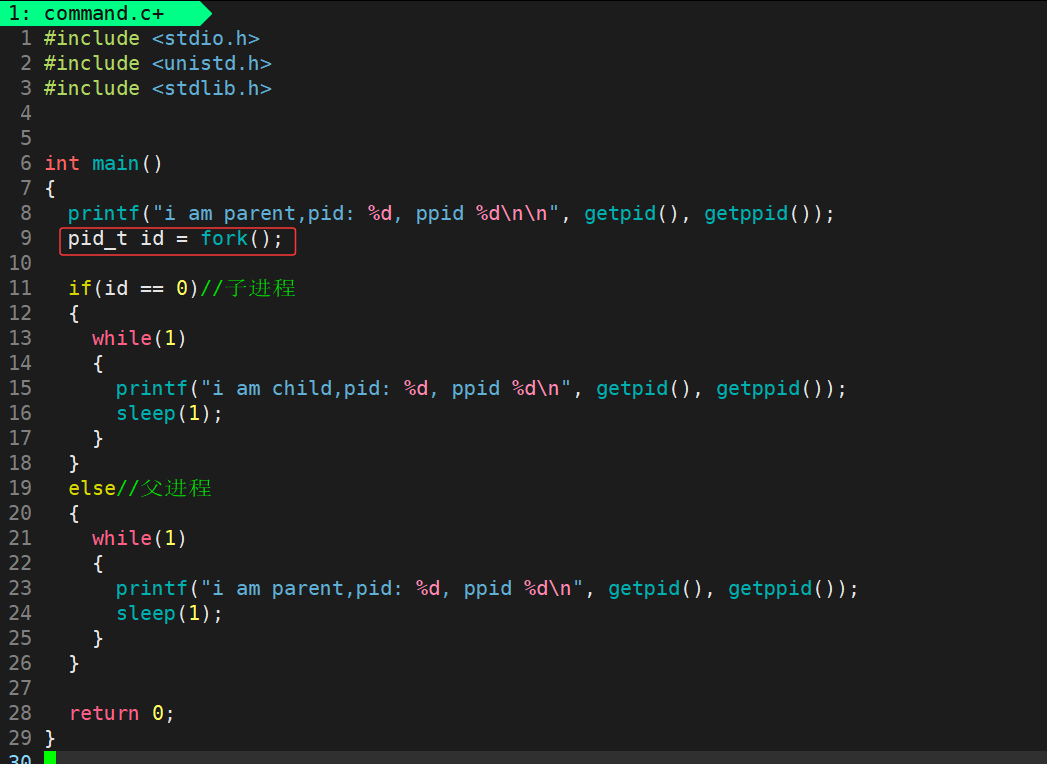 - 对于fork函数给父进程返回子进程的pid,给父进程返回0