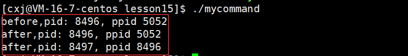运行结果如下,父进程和子进程分别执行不同的代码块,执行不同的执行流