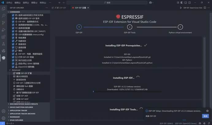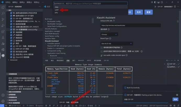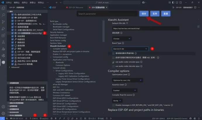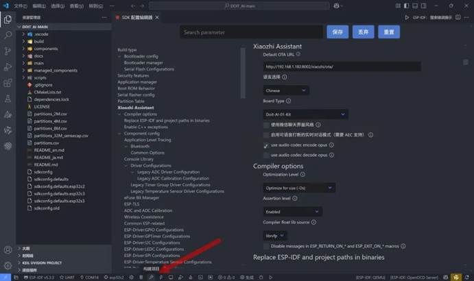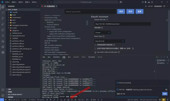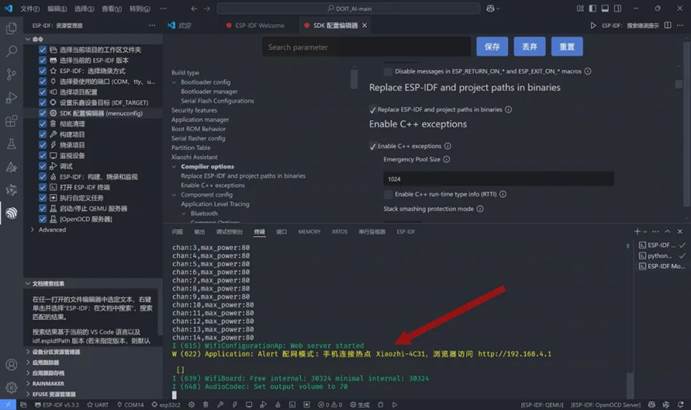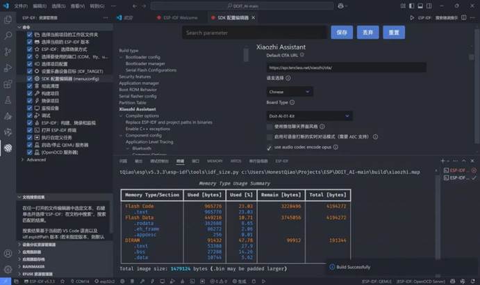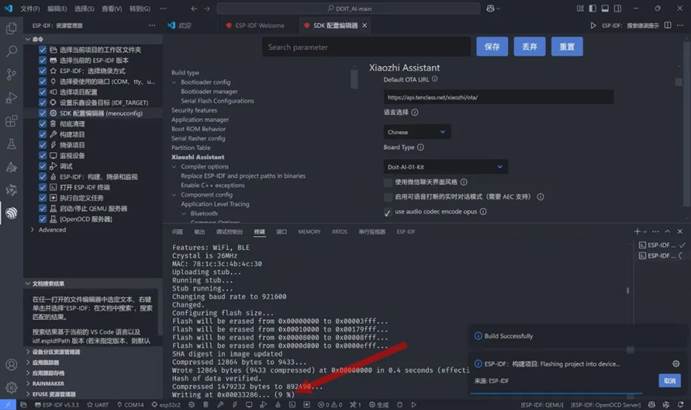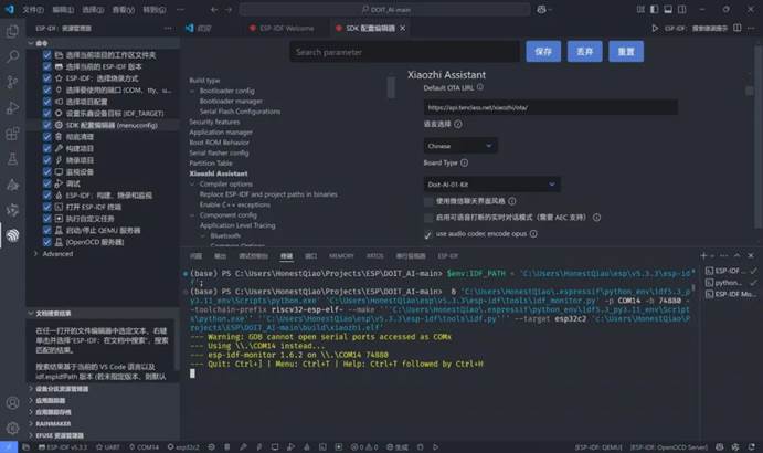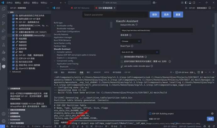 小智AI系统硬件设备的开源代码,可以在VSCode中安装ESP-IDF的扩展和编译工具,来进行编译和烧录。