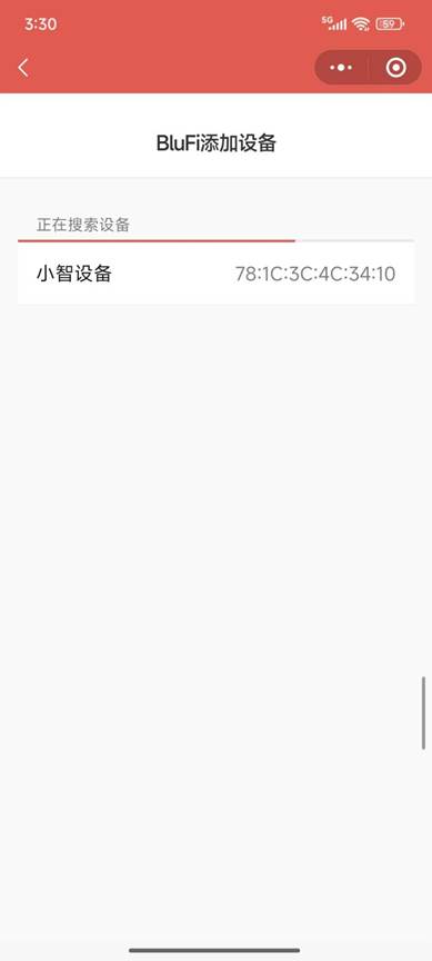 这时候可以扫描到对应的小智设备,点击进行配网,不同设备的MAC地址(78:1C:3C:4C:34:10)不同,图中仅做参考: