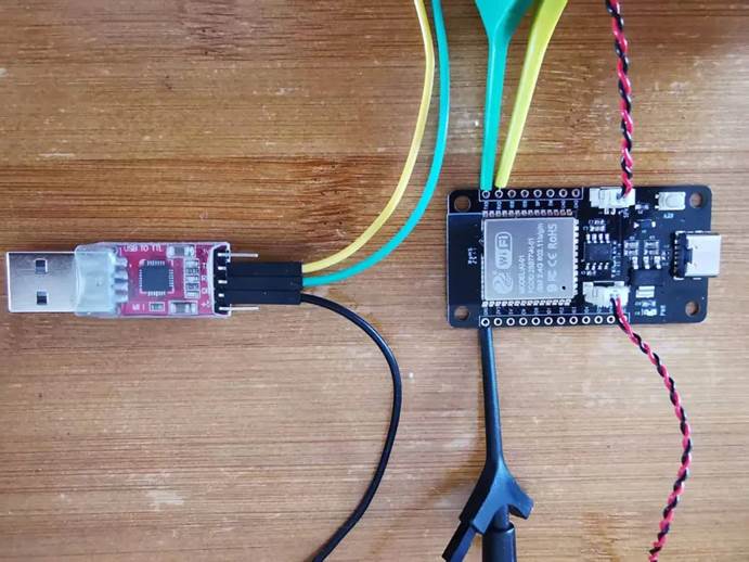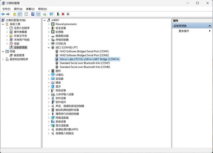 按照接线指导连接好以后,将`USB转串口工具`连接到电脑,再打开电脑的设备管理器,确保正确识别到对应的串口,并显示在`端口(COM和LPT)`中: