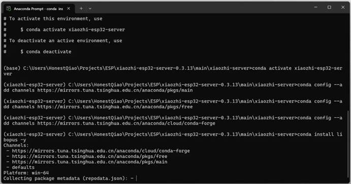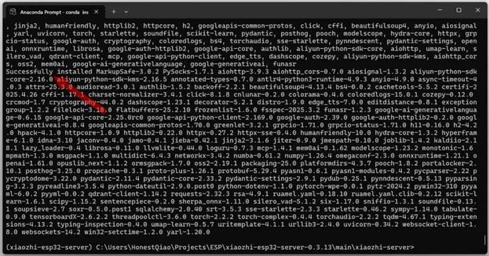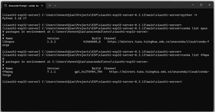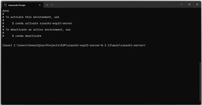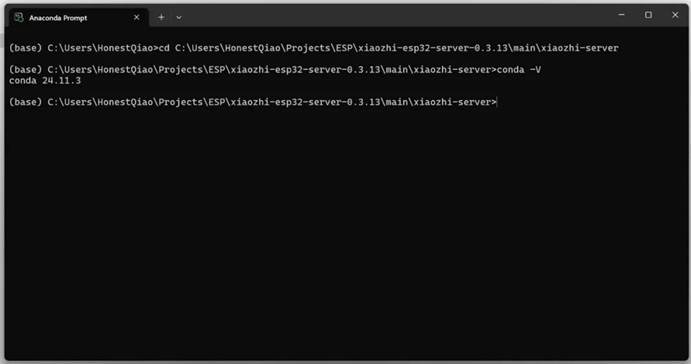 打开后,进入`xiaozhi-server`对应的目录,并执行下面的命令以查看conda版本,检测是否安装成功: