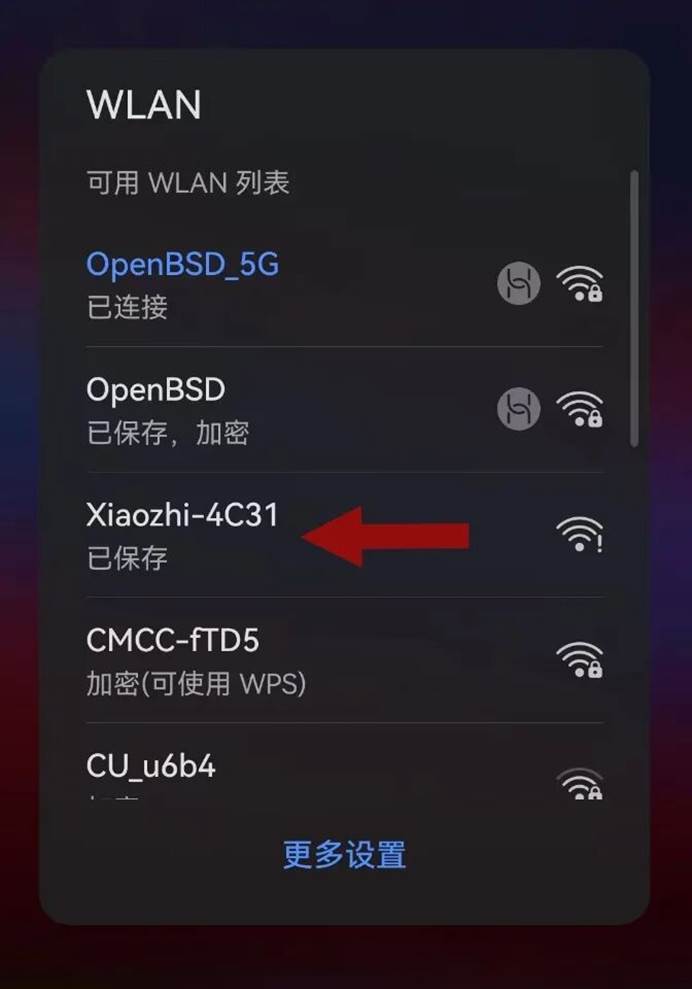此时,使用手机连接`Xiaozhi`开头的热点:
