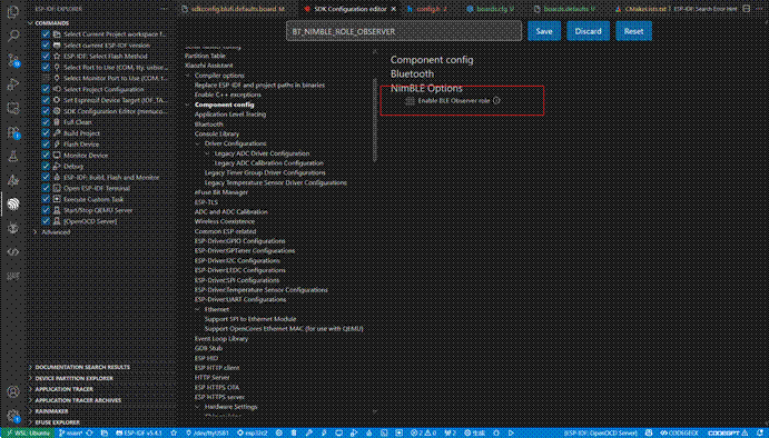 8.搜索BT_NIMBLE_ROLE_OBSERVER,将Enable BLE Observer role选项关闭