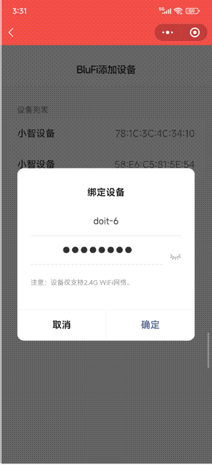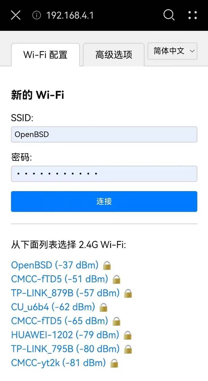 就能进入配网界面,设置当前环境所使用的WiFi名称和密码: