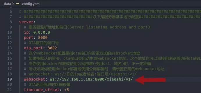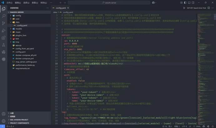 再用VSCode打开后端服务源码目录xiaozhi-server,并打开data目录中的.config.yaml修改配置: